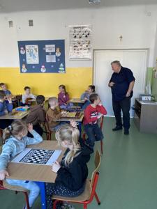 - z-ca dyr. Jarosław Lis, który prowadzi Koło szachowe w naszej szkole przedstawił dzieciom zasady gry w szachy. Zapoznał uczniów z nazwami figur i ich ruchami. Tego dnia dzieci doskonale bawiły się i przekonały się, że gry planszowe to nie tylko dobra zabawa, ale także świetny sposób spędzenia wolnego czasu bez świata elektronicznego.