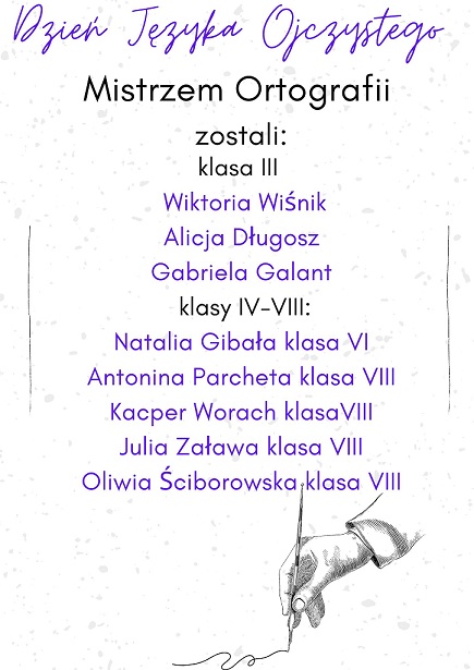 Tego dnia panie nauczycielki języka polskiego, biblioteki szkolnej i wychowawczyni klasy III przygotowały dla naszych uczniów „Dyktando Szkolne” (klasy IV-VIII) i Quiz ze znajomości trudnych w pisowni i w wymowie słów (klasa III). Poziom trudności pisanych dyktand przystosowany został do poszczególnych klas.