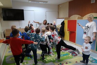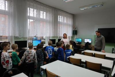 z piosenką na ustach „Jedzie pociąg z daleka” wyruszyły w podróż po szkole. Pierwszym przystankiem była świetlica szkolna gdzie odbyły się gry i zabawy sensoryczne. Następnie uczniowie „pociągiem” odwiedzili stołówkę, szatnię, salę informatyczną i klasy edukacji wczesnoszkolnej. Kolejnym przystankiem była sala biologiczna. Tam czekał na „podróżnych” zdrowy poczęstunek i ciekawe informacje na temat zdrowego stylu życia. Kolejny przystanek to pokój pedagoga szkolnego i biblioteka szkolna.