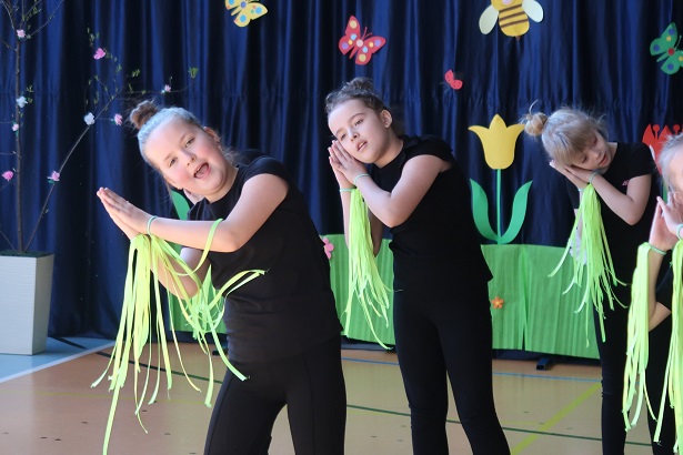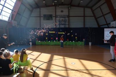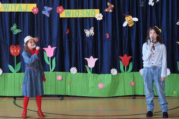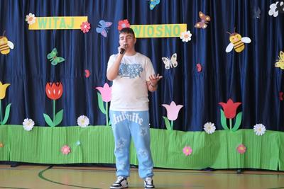 Pierwszy dzień wiosny w naszej szkole był niesamowity. Klasy I-III rozpoczęły go od sesji zdjęciowej a starsze klasy oglądały film i grały w kahoot. Atrakcją naszej wiosennej zabawy był Konkurs Piosenki Angielskiej. Wszyscy uczestnicy wykazali się znakomitym talentem wokalnym i znajomością języka angielskiego. Każdy wykonawca był dopingowany przez kolegów z klasy, którzy włożyli dużo pracy w przygotowanie plakatów promujących występy wokalistów. Jury w składzie pani dyrektor Marzanna Olborska, pan dyrektor Jarosław Lis i pani Renata Michalska po burzliwych naradach wyłoniło zwycięzców. Powitanie wiosny uświetniły występy dzieci z edukacji wczesnoszkolnej, które nie tylko pięknymi układami tanecznymi, ale również barwnymi strojami wywołały wiosenny nastrój. Na zakończenie wszyscy włączyli się do wspólnej zabawy przygotowanej przez młodzież klasy ósmej.