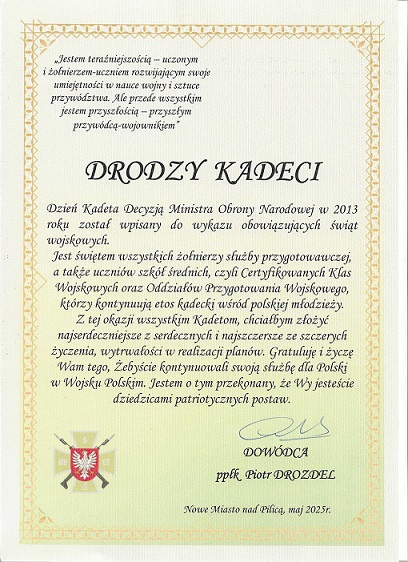 Dzień Kadeta Galeria zdjęć Powiązane wiadomości Misterium Wielkanocne Uroczyste Pożegnanie Maturzystów Próby sprawnościowe Dzień Kadeta Zebranie z rodzicami Sukces naszych uczniów w Zawodach Strzeleckich... Drukuj Udostępnij Data dodania: 20.05.2025 Wyświetlono: 18 Liceum Ogólnokształcące