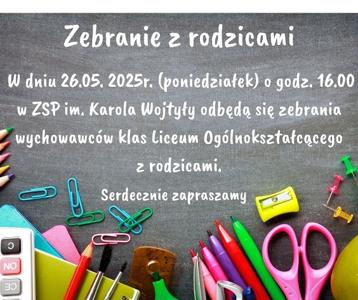Zebranie z rodzicami Galeria zdjęć Powiązane wiadomości Uroczyste Pożegnanie Maturzystów Próby sprawnościowe Dzień Kadeta Zebranie z rodzicami Sukces naszych uczniów w Zawodach Strzeleckich... Wycieczka do Częstochowy, Wadowic i Zatoru Drukuj Udostępnij Data dodania: 20.05.2025 Wyświetlono: 24 Liceum Ogólnokształcące
