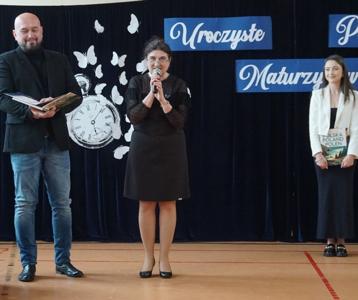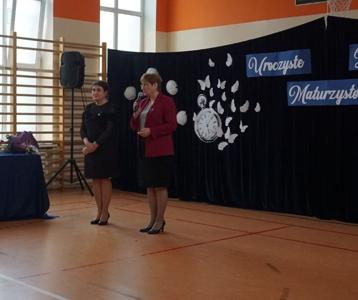 Swoją obecnością zaszczyciła nas Burmistrz - Pani Barbara Gąsiorowska, która złożyła życzenia tegorocznym maturzystom. W imieniu wszystkich rodziców głos zabrała Przewodnicząca Rady Rodziców Pani Dorota Gortatowicz, która pogratulowała młodzieży wspaniałych osiągnięć, a Dyrekcji Szkoły tak wspaniałego grona absolwentów.