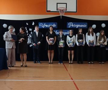 Nagrody za aktywne działanie na rzecz szkoły i środowiska lokalnego otrzymali: Oliwia Wiśnik, Oliwia Srebrzyńska, Marlena Dziuba, Wiktoria Kaczmarek, Klaudia Kos, Mikołaj Włodarski, Jakub Tulin.