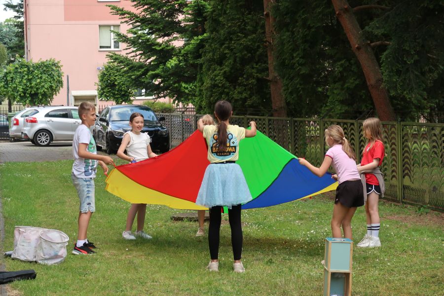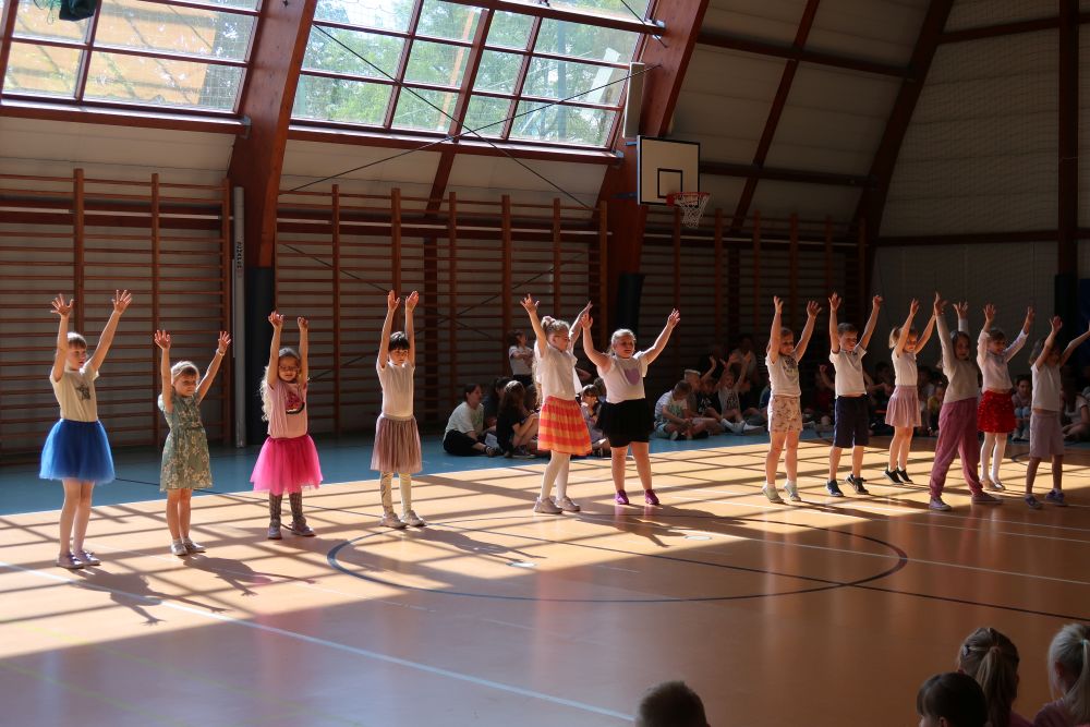 Obchody Dnia Dziecka, w naszej szkole dyrekcja pani Marzanna Olborska i pan Jarosław Lis rozpoczęli od wręczenia uczniom słodkich upominków. Kolejnym punktem tego wyjątkowego dnia był pokaz taneczny naszych uczniów przygotowany przez instruktora tańca ze Szkoły Tanecznej „Emotion”. Następnie uczniowie pod opieką nauczycieli udawali się na „pikniki klasowe” na świeżym powietrzu. Boisko szkolne zamieniło się w kolorowy plac zabaw. Były gry, bańki mydlane, rozgrywki sportowe w piłkę nożną, dmuchane zjeżdżalnie, zabawy taneczne. Animatorki malowały dzieciom twarze, robiły warkoczyki, tatuaże i kolorowe bransoletki. Nie mogło zabraknąć pysznego poczęstunku. Kiełbaskę z grilla i przepyszny deser w postaci waty cukrowej, popcornu i owocowego smoothie wszyscy zjedli z apetytem. Ten owocujący w wiele wrażeń dzień przebiegł w radosnej atmosferze.