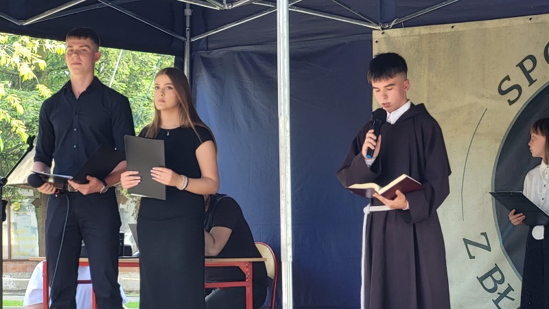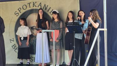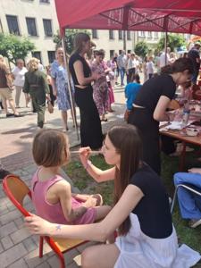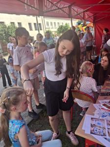 1 czerwca odbyły się coroczny Dzień Honoracki - wyjątkowe wydarzenie upamiętniające bł. Honorata Koźmińskiego. W obchody tego wydarzenia włączyli się uczniowie Zespołu Szkolno-Przedszkolnego im. Karola Wojtyły oraz uczniowie Liceum Ogólnokształcącego w Nowym Mieście. Pod kierunkiem p. Izabeli Rogowskiej, p. Marleny Wiśnik i p. Adama Lewandowskiego młodzież wystąpiła w spektaklu "W cieniu murów - opowieść o bł. Honoracie". Wystąpiły także dzieci z Przedszkola Samorządowego, pod opieką p. Anny Binkowskiej. Ich obecność dodała temu wydarzeniu szczególnego charakteru. Uczennice naszej szkoły wraz z koleżankami z PSP im. Kard. St. Wyszyńskiego z zaangażowaniem pracowały na rzecz najmłodszych uczestników tego wydarzenia. Malowanie twarzy, zaplatanie warkoczy, tworzenie kolorowych bransoletek i tatuaży cieszyły się dużym zainteresowaniem dzieci. Cieszymy się, że nasza szkoła mogła wnieść tak istotny wkład w obchody tegorocznego Dnia Honorackiego.