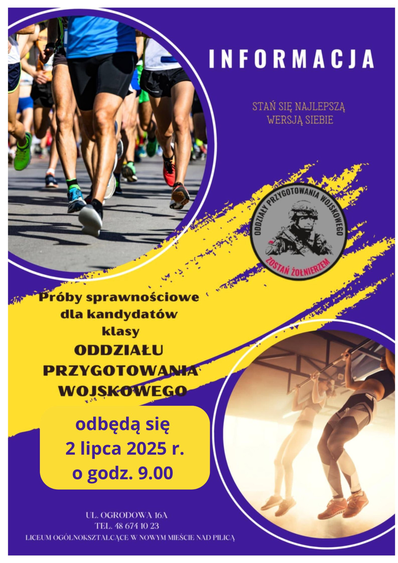 Próby sprawnościowe dla kandydatów do klasy OPW - drugi termin Galeria zdjęć Powiązane wiadomości Licealiści uczestniczyli w akcji popularyzującej... Wojewódzkie zawody strzelecki klas mundurowych Uczniowie OPW odwiedzili Warszawską Brygadę Pancerną... Próby sprawnościowe dla kandydatów do klasy OPW... "Mam talent" Uczniowie OPW naszego liceum promowali szkołę... Drukuj Udostępnij Data dodania: 18.06.2025 Wyświetlono: 25 Liceum Ogólnokształcące