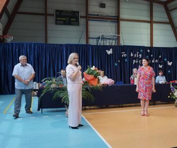Nie zabrakło również serdecznych podziękowań od Rady Rodziców oraz ciepłych życzeń udanych i bezpiecznych wakacji od pani dyrektor i pani burmistrz.