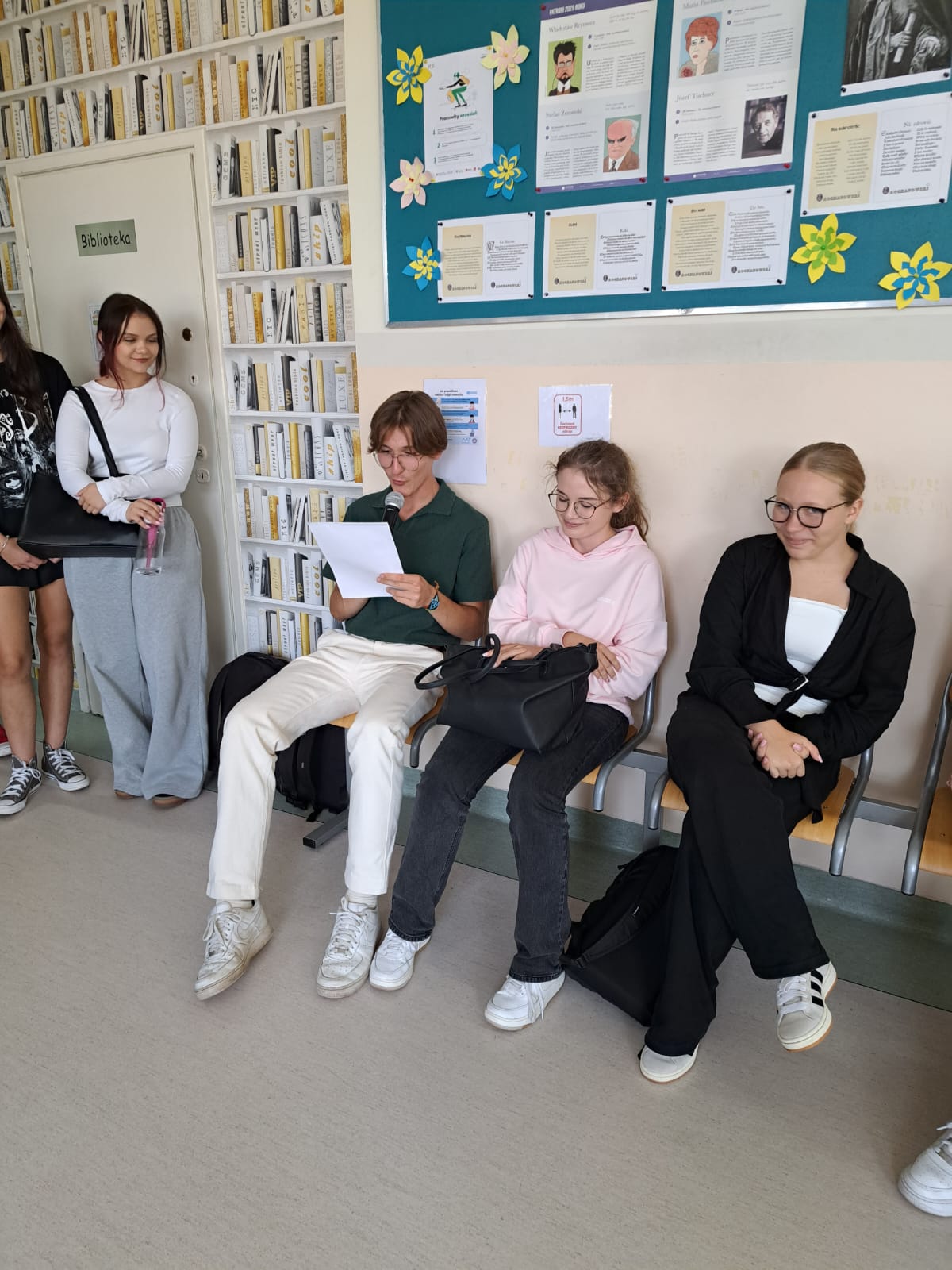 Narodowe Czytanie W środę 10 września w naszej szkole odbyło się Narodowe Czytanie poezji Jana Kochanowskiego. Galeria zdjęć Powiązane wiadomości Uczniowie OPW naszego liceum promowali szkołę... Uroczyste zakończenie roku szkolnego 2024/2025 Uroczyste rozpoczęcie roku szkolnego Narodowe Czytanie Zebranie z rodzicami Warsztaty z Ewą Niespodzianą "O akceptacji, hejcie... Drukuj Udostępnij Data dodania: 11.09.2025 Wyświetlono: 10 Liceum Ogólnokształcące