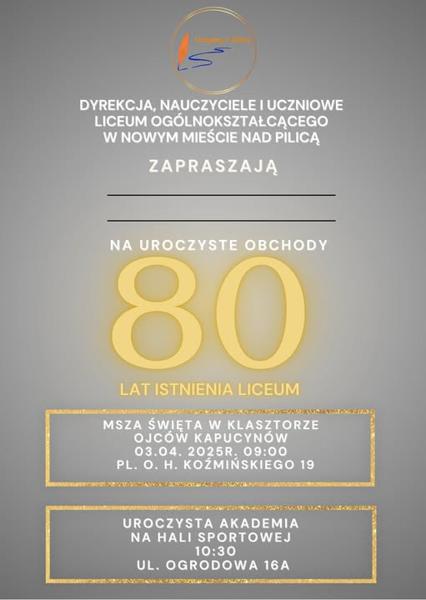 01.04.2025 Liceum Ogólnokształcące Zapraszamy na Jubileusz 80-lecia naszego Liceum Szanowni Rodzice, Uczniowie i Sympatycy naszego LO, z wielką radością zapraszamy Was na uroczyste obchody 80-lecia Liceum Ogólnokształcącego w Nowym Mieście nad Pilicą, które odbędą się... Czytaj więcej